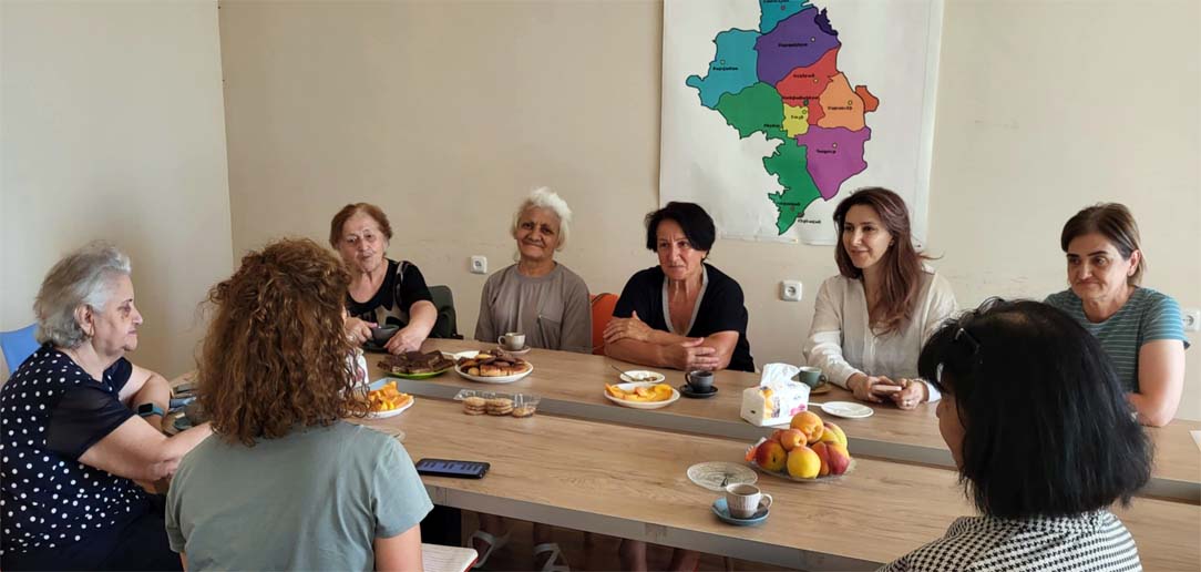 Нынешнюю встречу организовала наша верная последовательница нашей организации и Программы поддержки пожилых людей Гаяне Балаян. Она и Фируза подружились ещё в Бердзоре. Гаяне предложила нам встретиться, познакомиться лично и решить, где и в каком формате организовать концерт Фирузы для наших бенефициаров. Мы просто ждали Фирузу и Гаяне в офисе и даже не представляли, что эта деловая встреча превратится в культурное событие. Сначала к нам совершенно неожиданно присоединились трое наших бенефициаров, а затем в гости пришла наша соотечественница из Арцаха, постоянная участница наших психологических тренингов в Степанакерте. Она просто хотела повидаться с нами. Дальше мы уже сымпровизировали: накрыли чайный стол в зале для встреч, где, как оказалось, прекрасная акустика. И уже за чаем мы продолжили беседу с Фирузой, задавали ей вопросы, а она с удовольствием отвечала на них, в том числе и на интересующие наших подопечных, а между ответами пела, пела… Её нежный голос разносился по всему офису. Он был чистым-чистым, высоким и прекрасным, как её родные горы. Мы слушали чарующий голос Фирузы, и мысли уносили нас к дому – к ставшими недоступными пределами нашей родины…