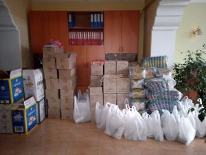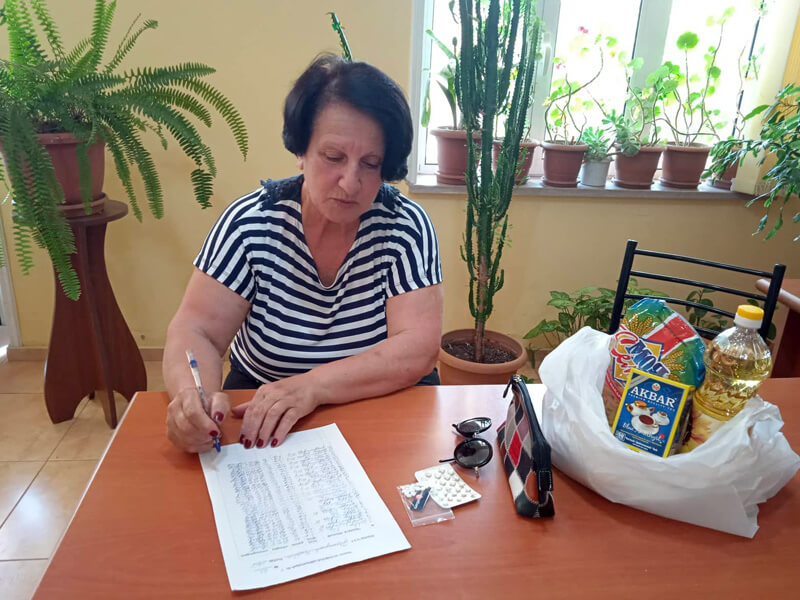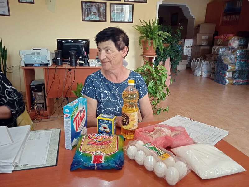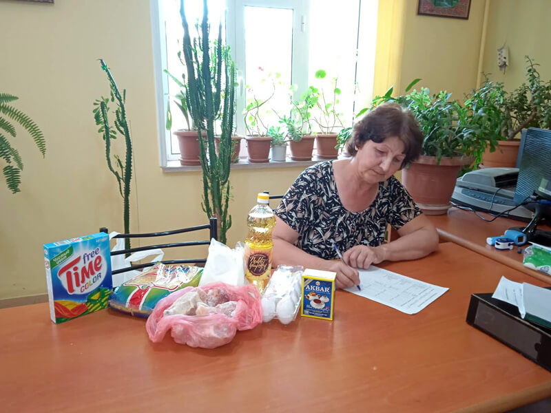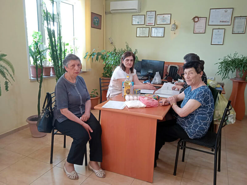 Մնացածների միջև պարենային օգնությունը բաշխում են Աշխատանքի եւ սոցիալական հարցերի նախարարության Տարեցների տնային սպասարկման կենտրոնի եւ Հանգանակի սոցիալական աշխատողները։