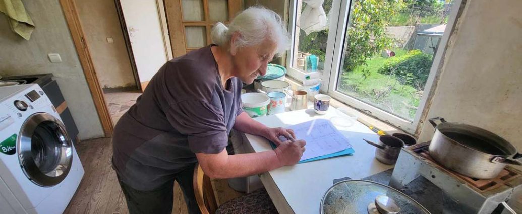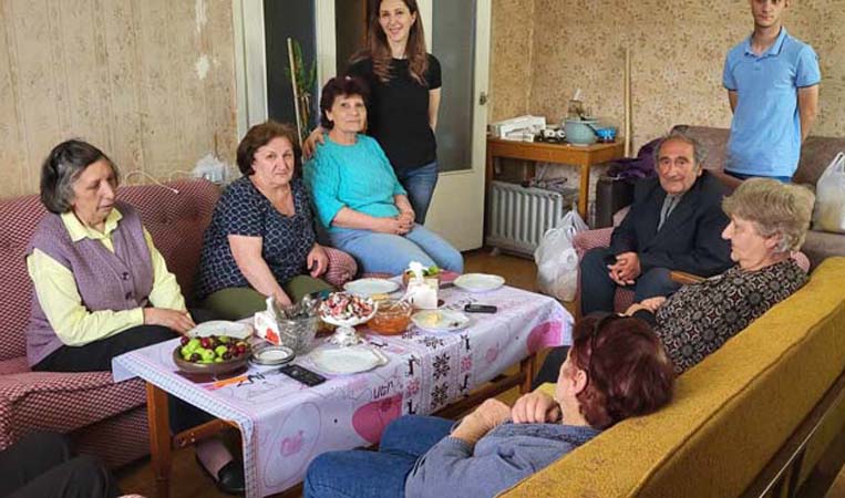 Մեր վերջին այցը Վանաձորում տիկին Ի-ի տունն էր, որտեղ մեզ սպասում էին մեր 7 շահառուները: Տիկին Լ-ն բերել էր իր պատրաստած դեղձի մուրաբան, տիկին Ս-ն բերել էր մրգեր, իսկ տիկին Ի-ն պատրաստել էր տորթ՝ իր սեփական բաղադրատոմսով: Շատ հաճելի ժամանց ունեցանք տիկին Ի-ի տանը, որը նա գնել էր որպես Շուշիից բռնագաղթած եւ Արցախի բանակում երկար տարիներ ծառայած զինվորականին հասնող փոխհատուցման վճարով: Նրա հյուրասեր տունը դարձել է Հանգանակի շահառուների համար հավաքատեղի, որտեղ նրանք հաճախակի հանդիպում են, հաճելի ժամանակ անցկացնում՝ հիշողություններով եւ կարոտով: